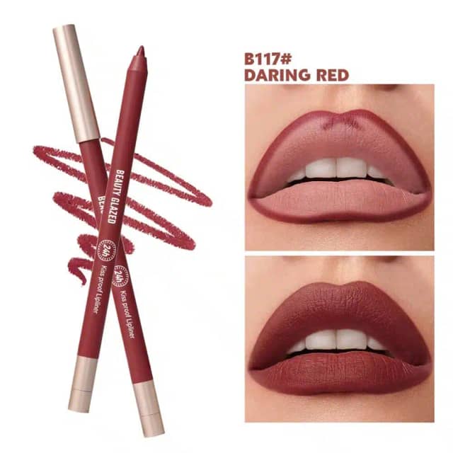 Elevate your lip game with the quintessential tool for precision and lasting power: the Beauty Glazed Waterproof & Long Lasting Lipliner Pencil – B117 Daring Red. This isn't just any lipliner; it's your secret weapon for achieving perfectly defined, smudge-proof lips that stand the test of time and climate. Designed to deliver intense pigmentation in a vibrant "Daring Red" shade, it creates a flawless canvas for your favorite lipstick or can be worn alone for a bold matte finish. For every beauty enthusiast in Bangladesh seeking professional results without the hefty price tag, this remarkable lipliner is now officially available. Discover the authenticity and competitive pricing, currently just BDT 95, exclusively at RuSu, Bangladesh's premier online beauty destination. Embrace enduring beauty and effortless application with this must-have addition to your makeup collection.