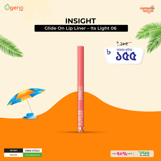 Insight Glide On Lip Liner – Its Light 06 is formulated for all skin types. Whether you have dry, oily, combination, or sensitive skin — common concerns in Bangladesh's climate — this product adapts to your skin's needs. Start with a patch test if you have highly reactive skin.