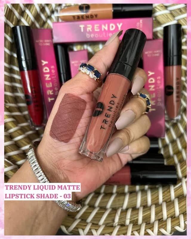 The active ingredients in Trendy Beauties Liquid Matte Lipstick Waterproof 03 are chosen specifically for their efficacy and safety profile. Trendy Beauties maintains high formulation standards across their product range. All ingredients comply with international cosmetic regulations. For a complete INCI list, see the product packaging or contact our team.
